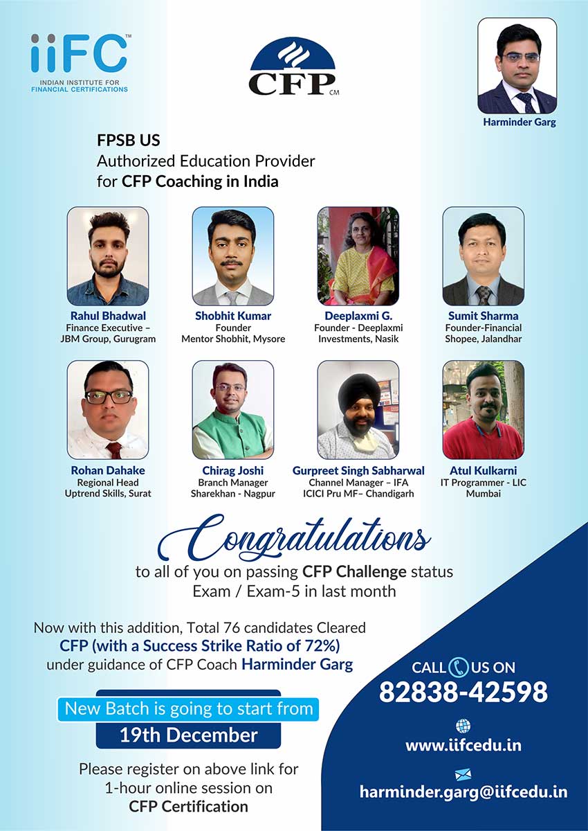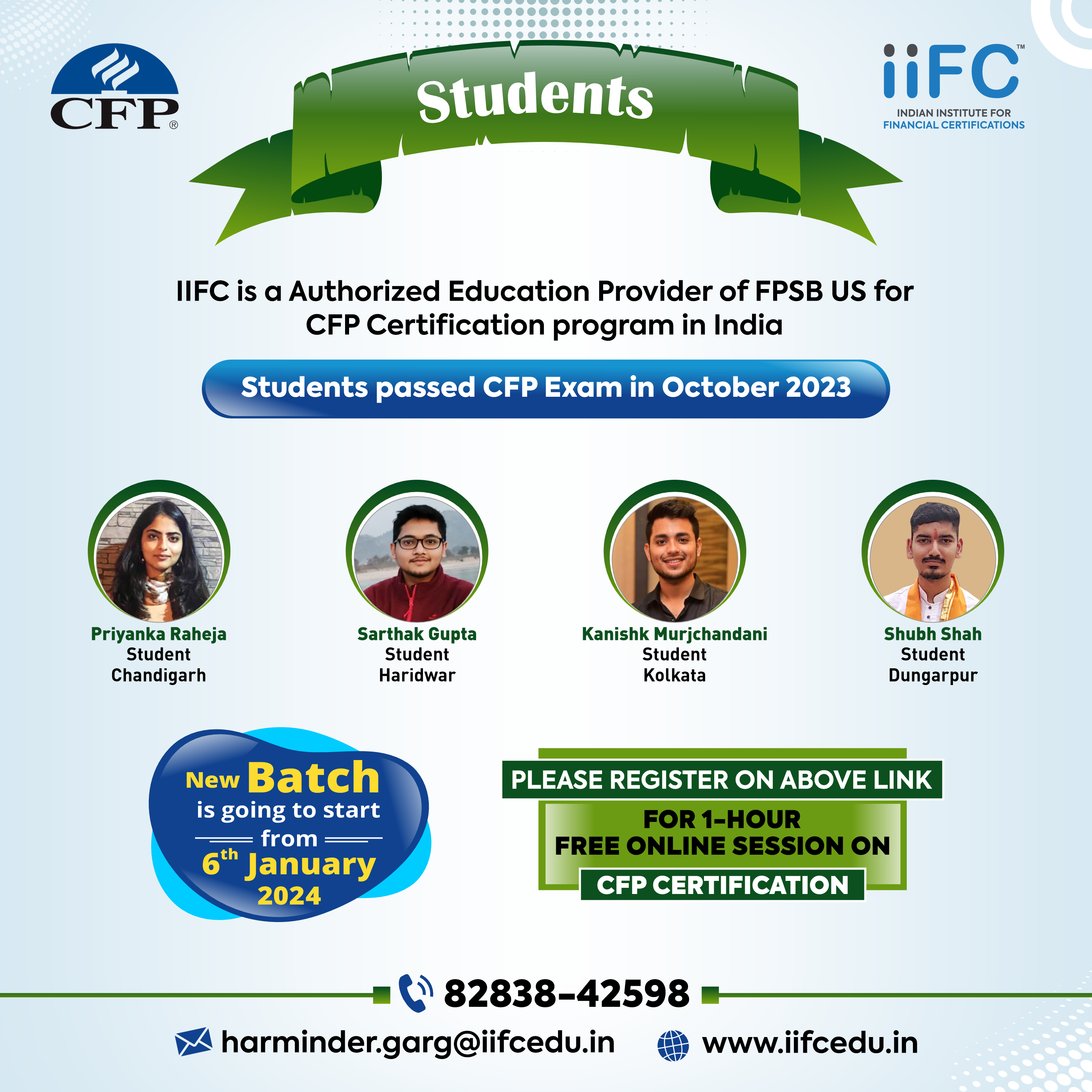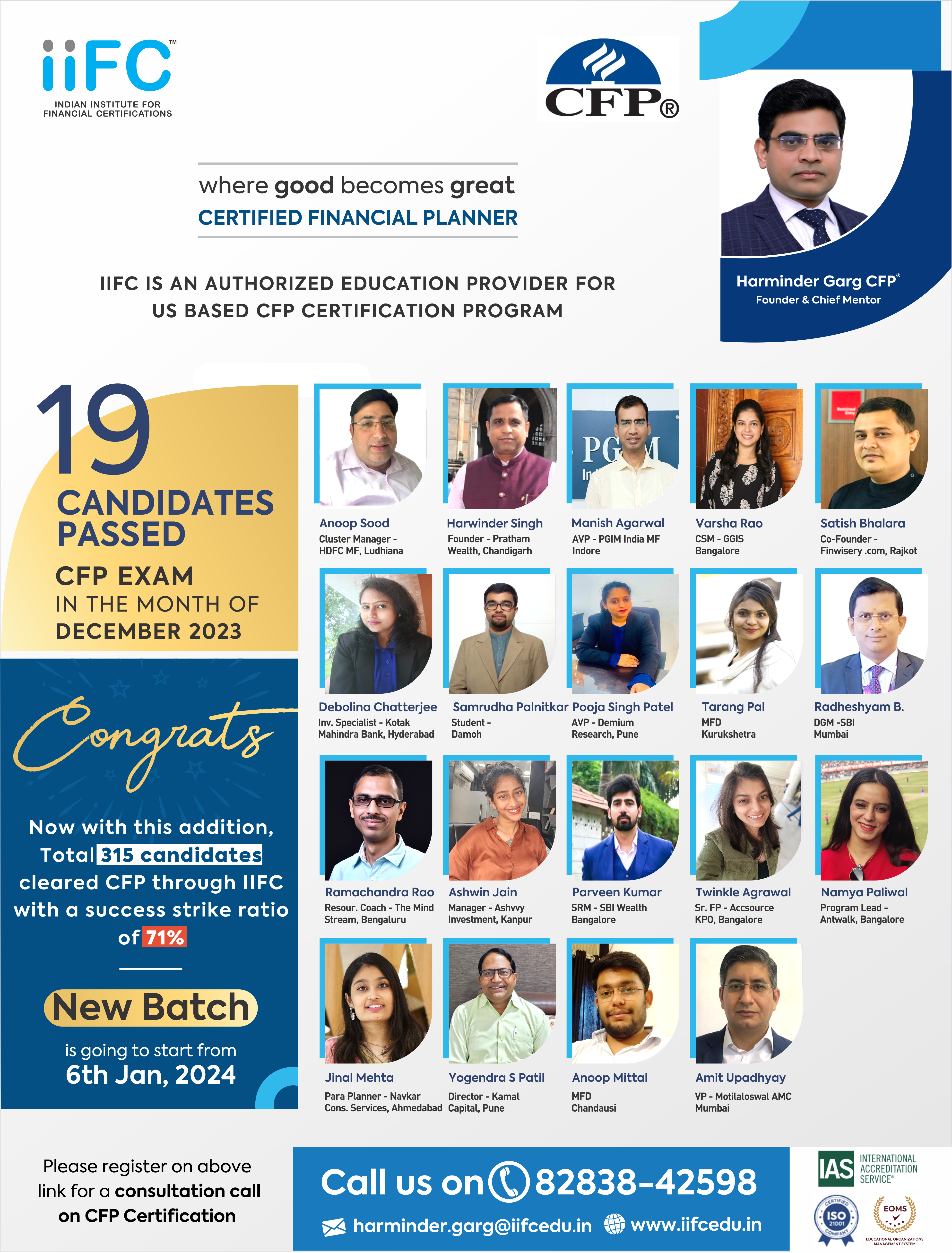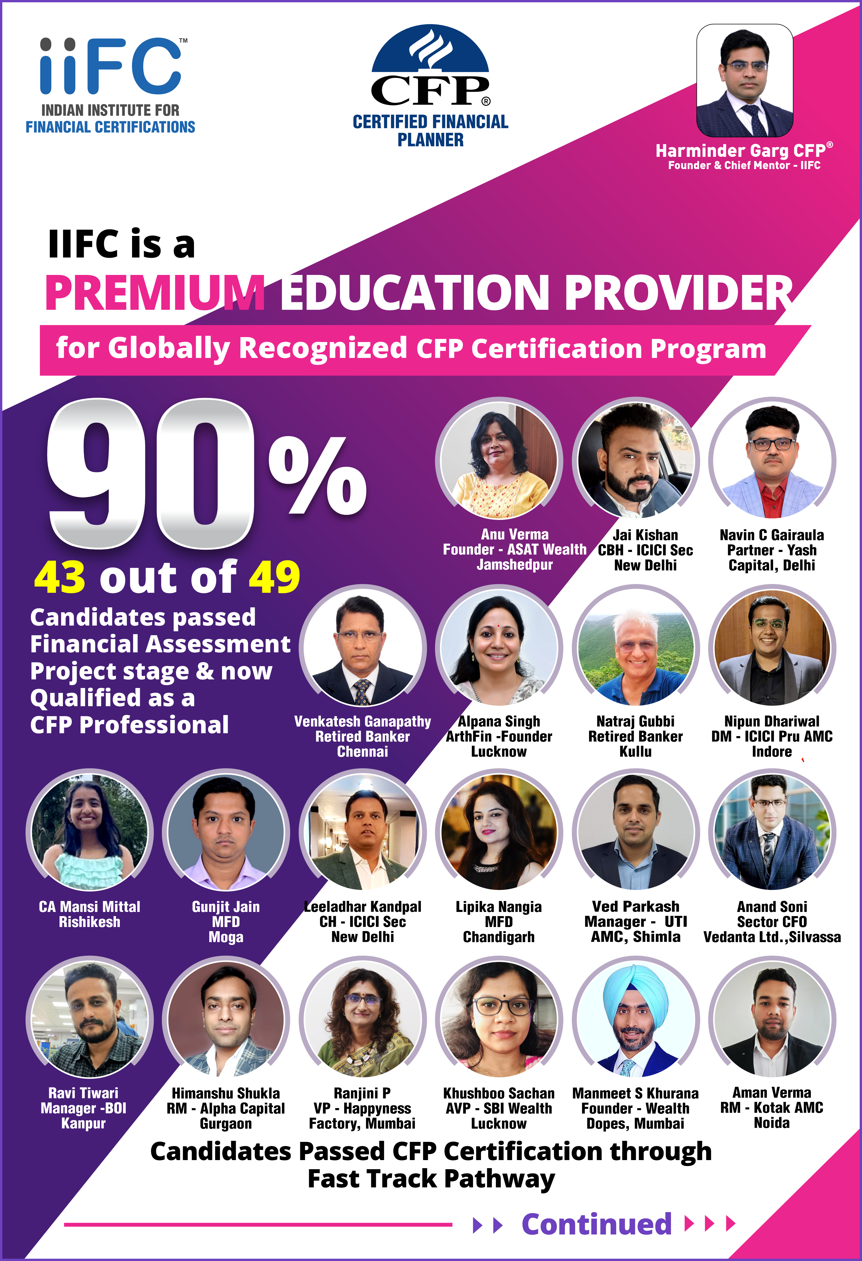 With great happiness and joy, I would like to share that now I am CERTIFIED FINANCIAL PLANNER (CFP). CFP Certification is a USA based qualification in the field of Financial