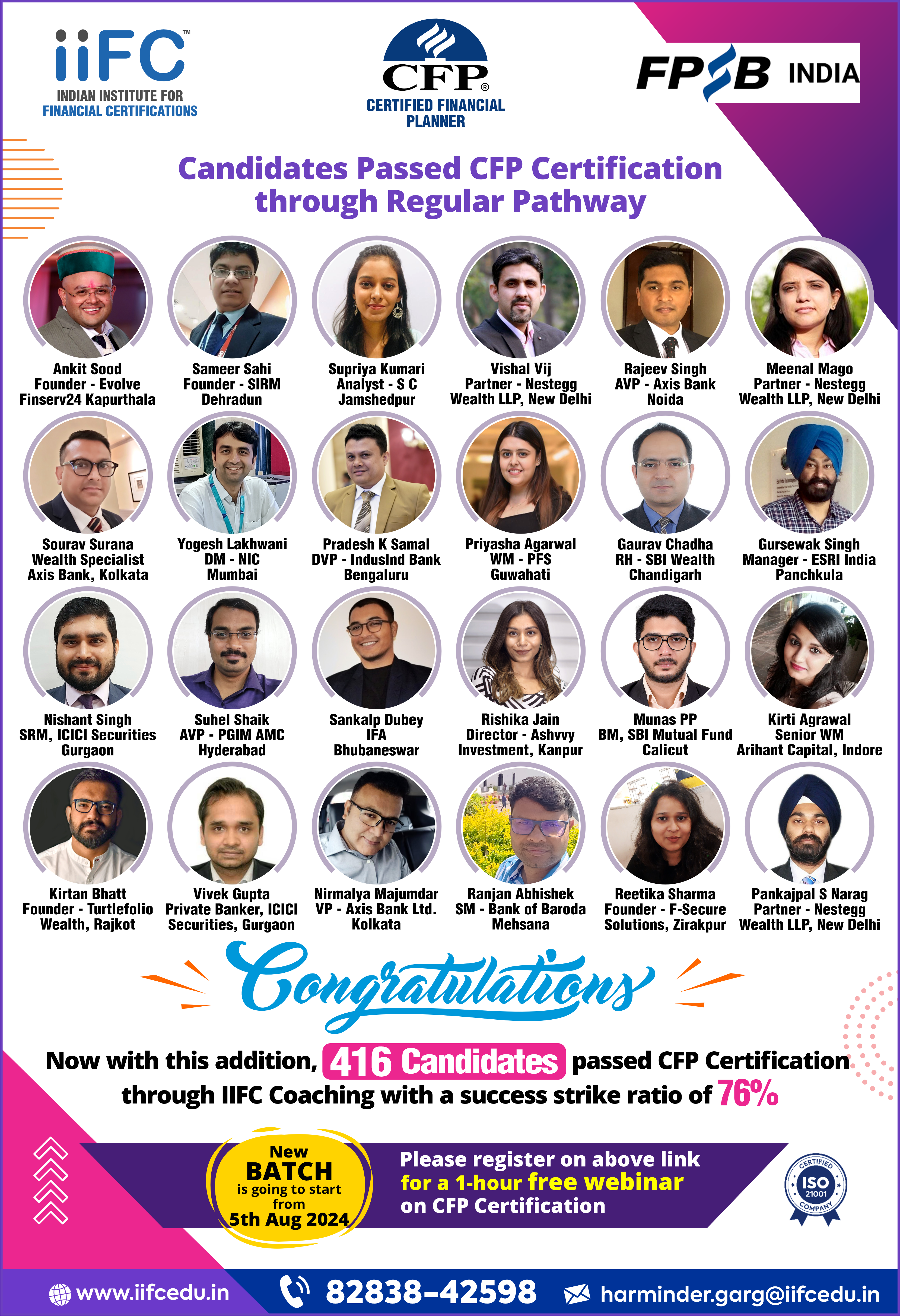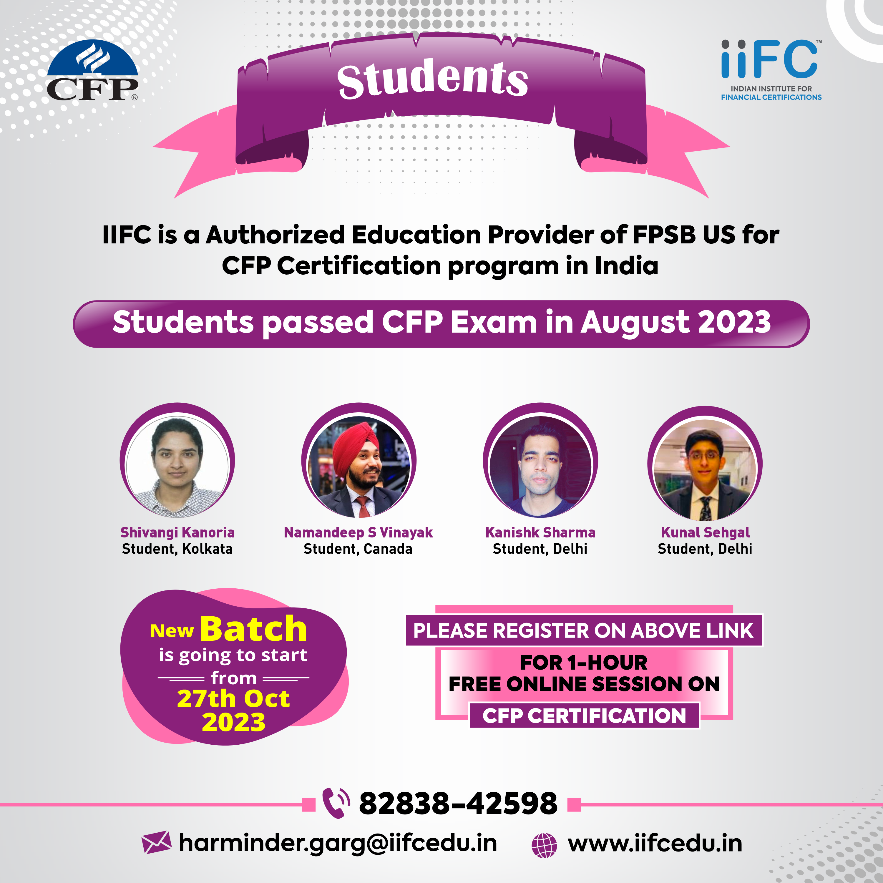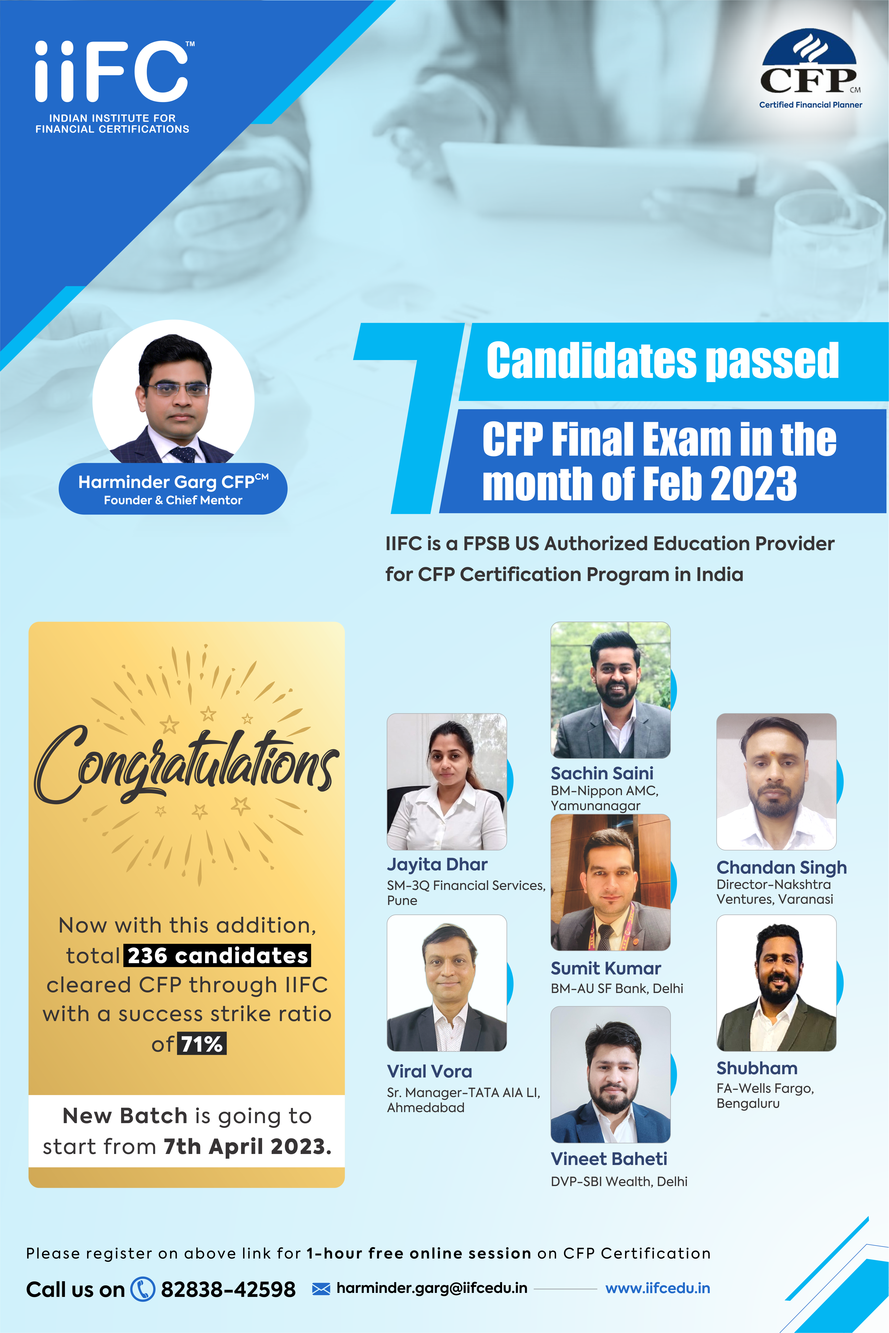 With great happiness and joy, I would like to share that now I am CERTIFIED FINANCIAL PLANNER (CFP). CFP Certification is a USA based qualification in the field of Financial