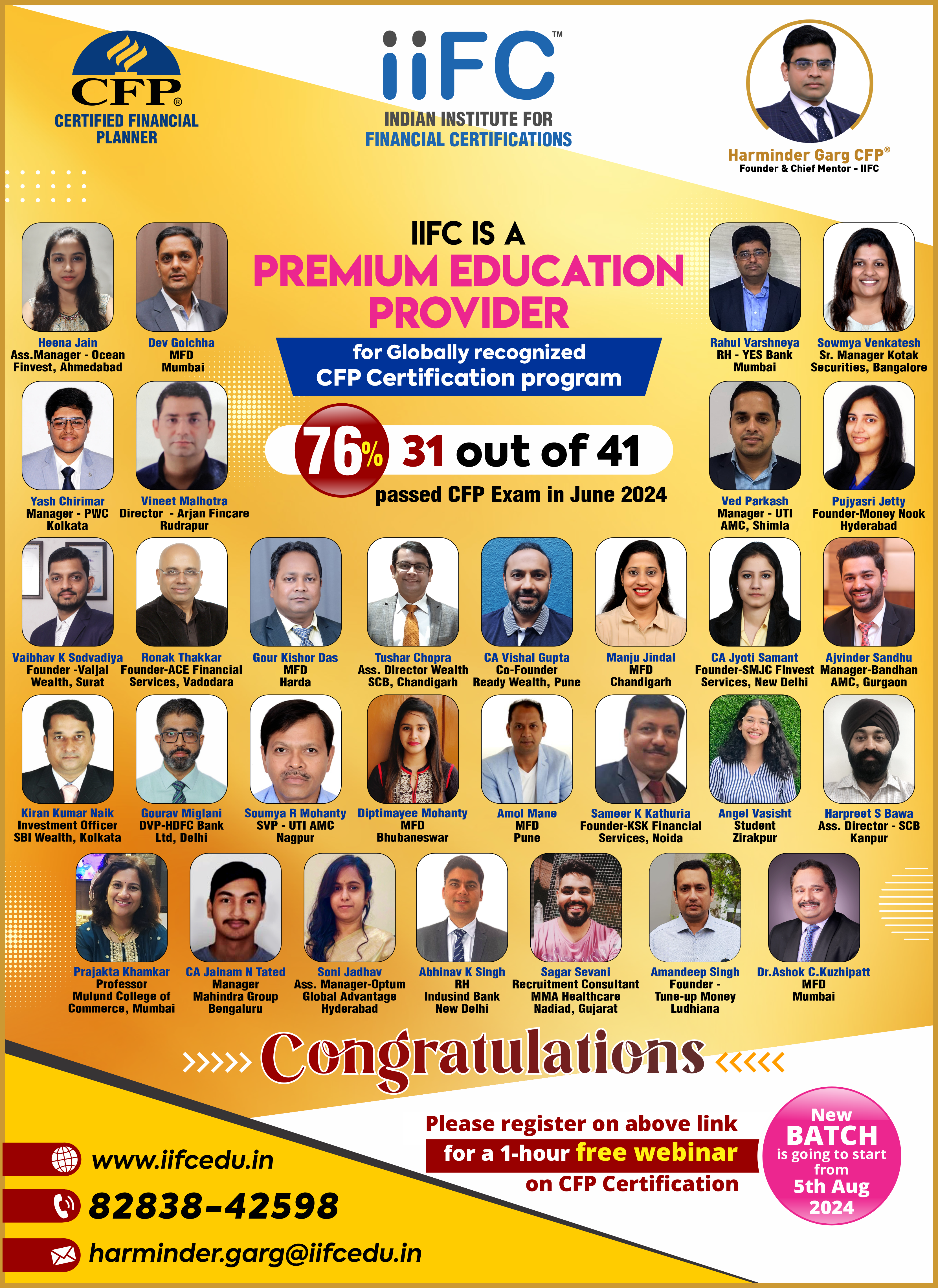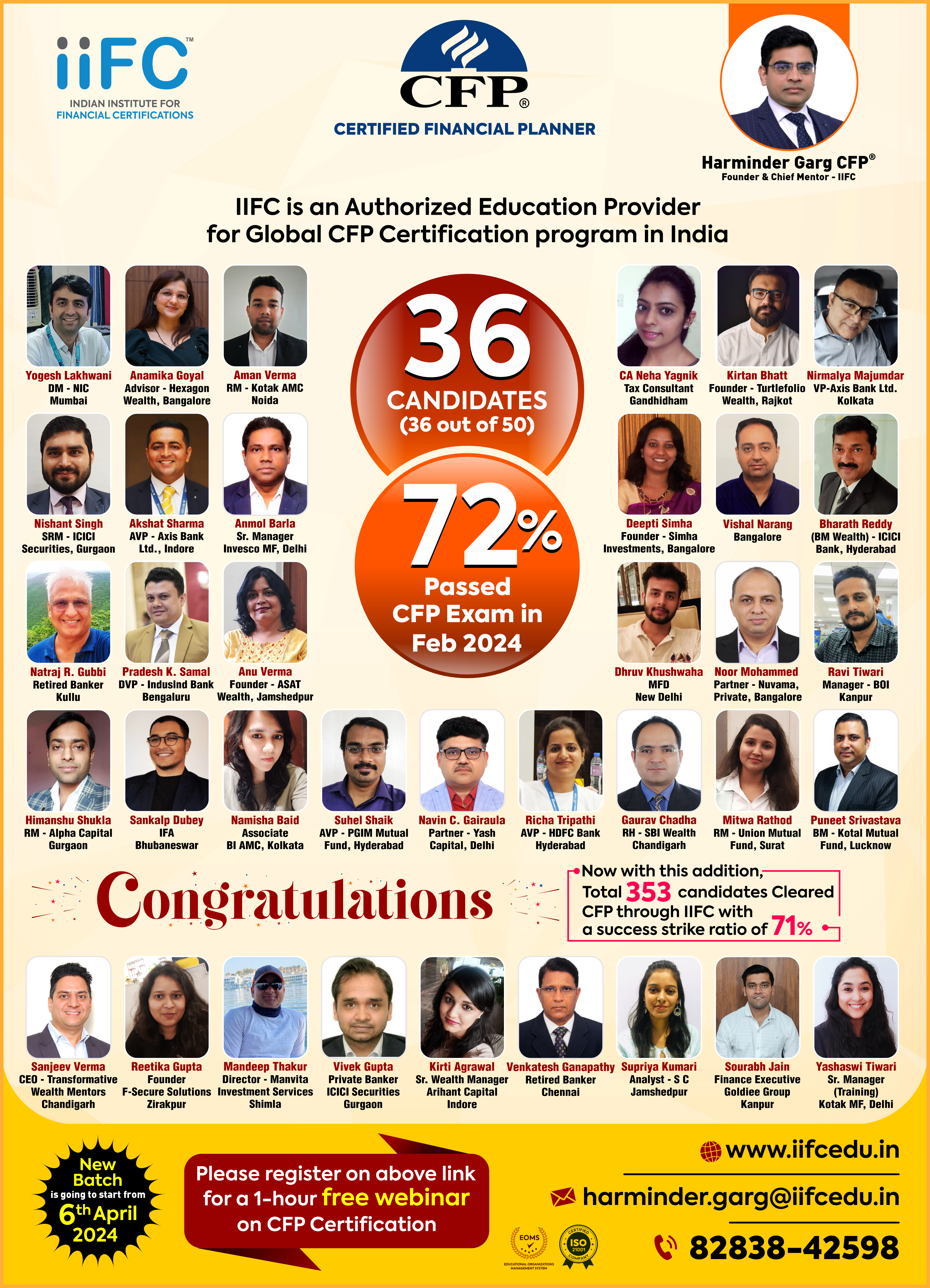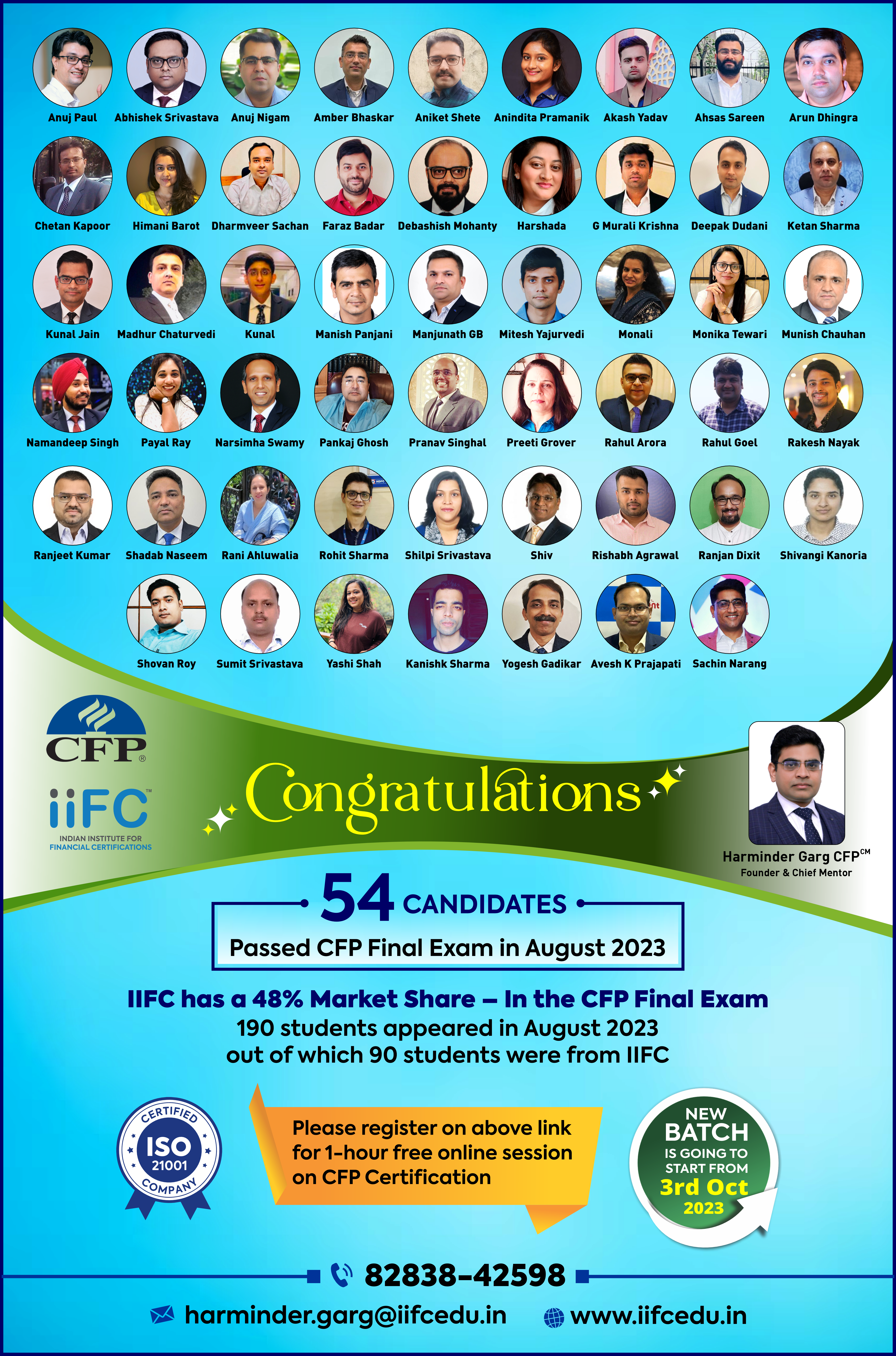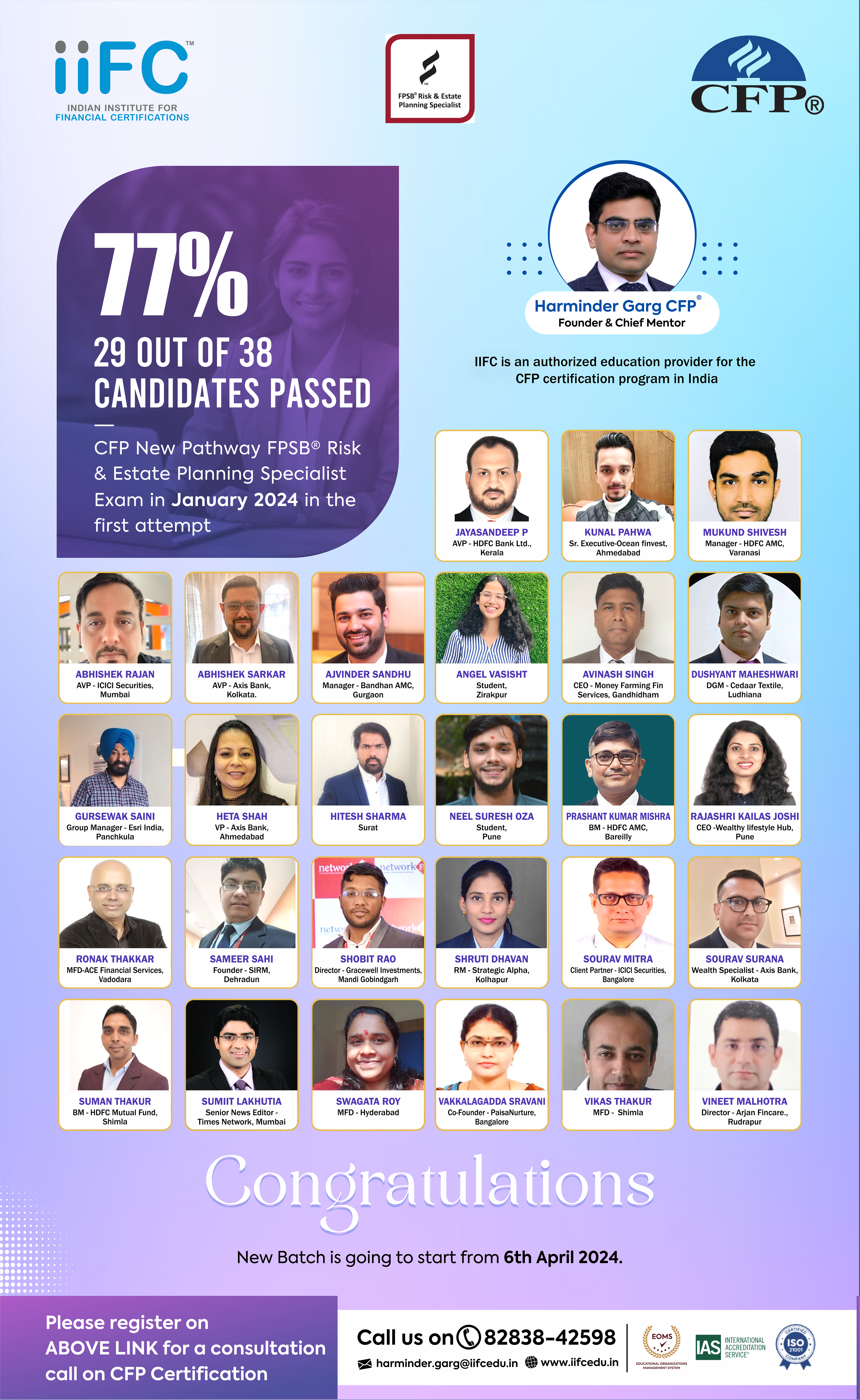 With great happiness and joy, I would like to share that now I am CERTIFIED FINANCIAL PLANNER (CFP). CFP Certification is a USA based qualification in the field of Financial